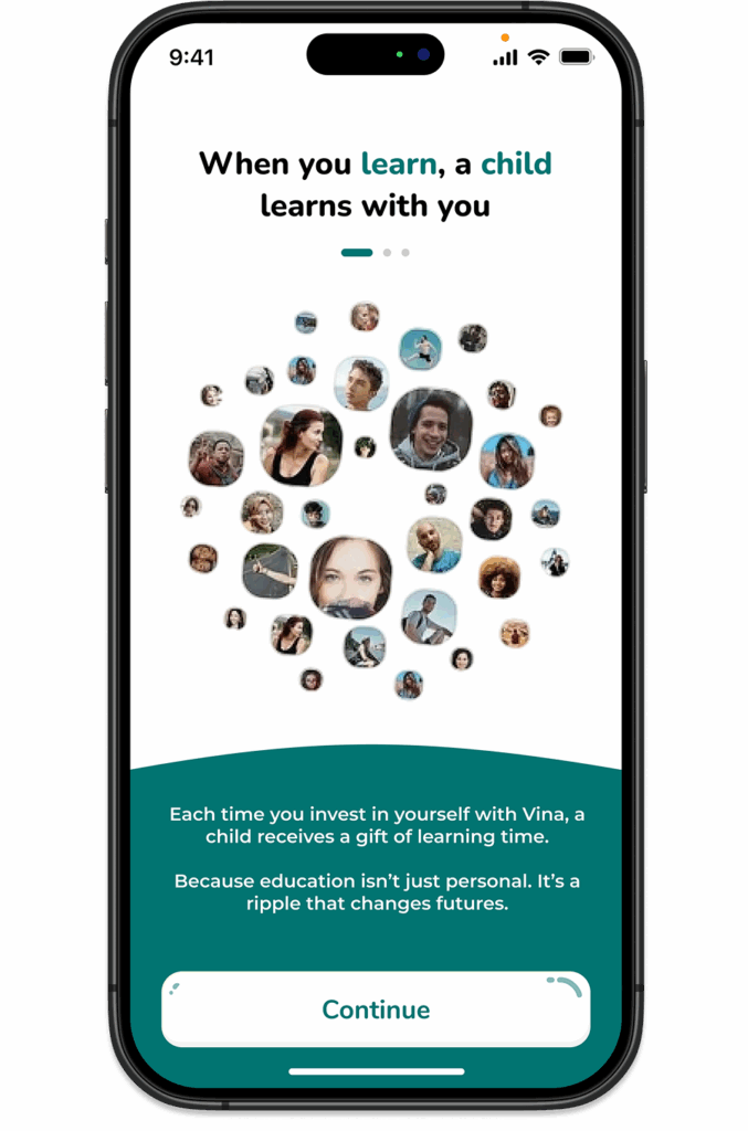 For every minute you learn on Vina, we sponsor a minute of education for a child, so your growth fuels global impact.