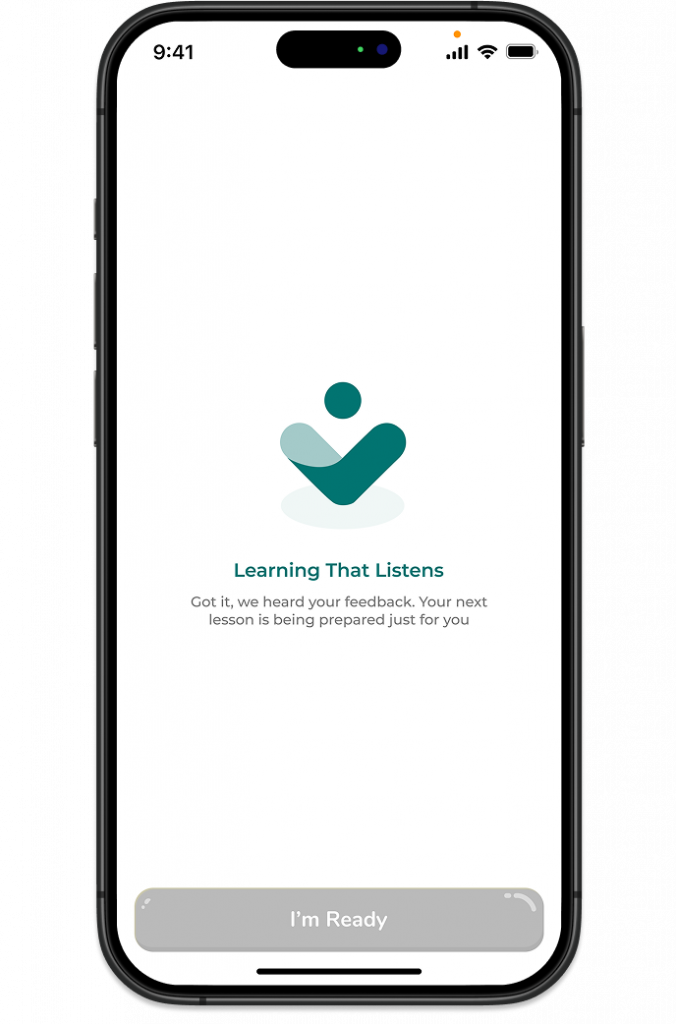 Each video, quiz, and explanation adjusts instantly to your feedback, keeping you challenged, motivated, and moving toward your goals.